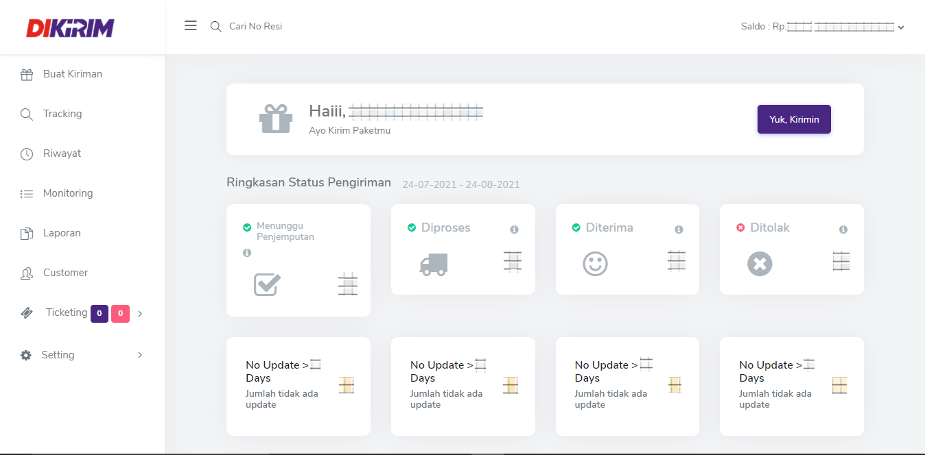 Setiap pengiriman di Dikirim akan dimonitoring secara otomatis oleh sistem,